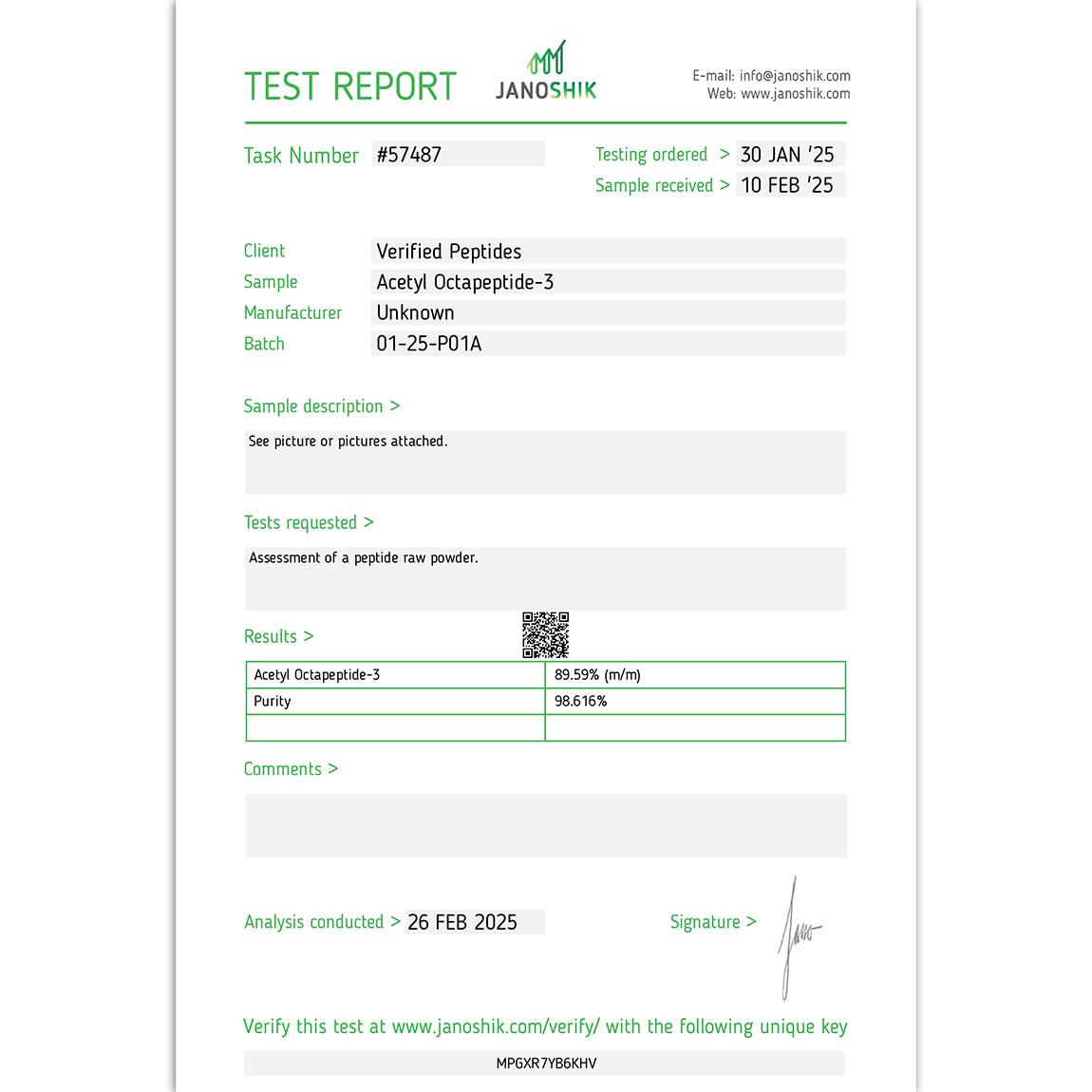 Bottle: screw top test tube (no vial) Form: raw powder (non-lyophilized) Not for reconstitution
